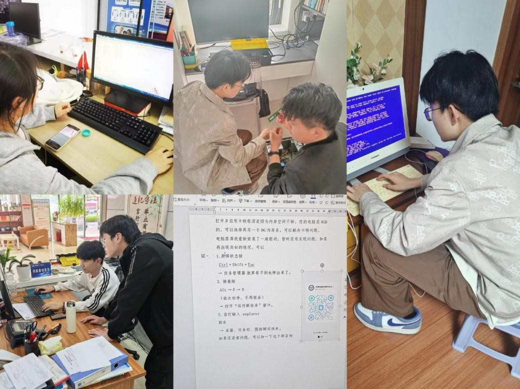 活动中,义诊队成员耐心了解教职工的使用需求,细致排查各类设备故障,涵盖系统重装、硬件检测、外设连接及故障诊断等多个方面。同学们凭借扎实的专业技能和认真的服务态度,赢得了广泛好评。同时,队员还积极普及电脑日常维护、数据备份与网络安全知识,提供个性化使用建议,助力降低设备故障发生频率。