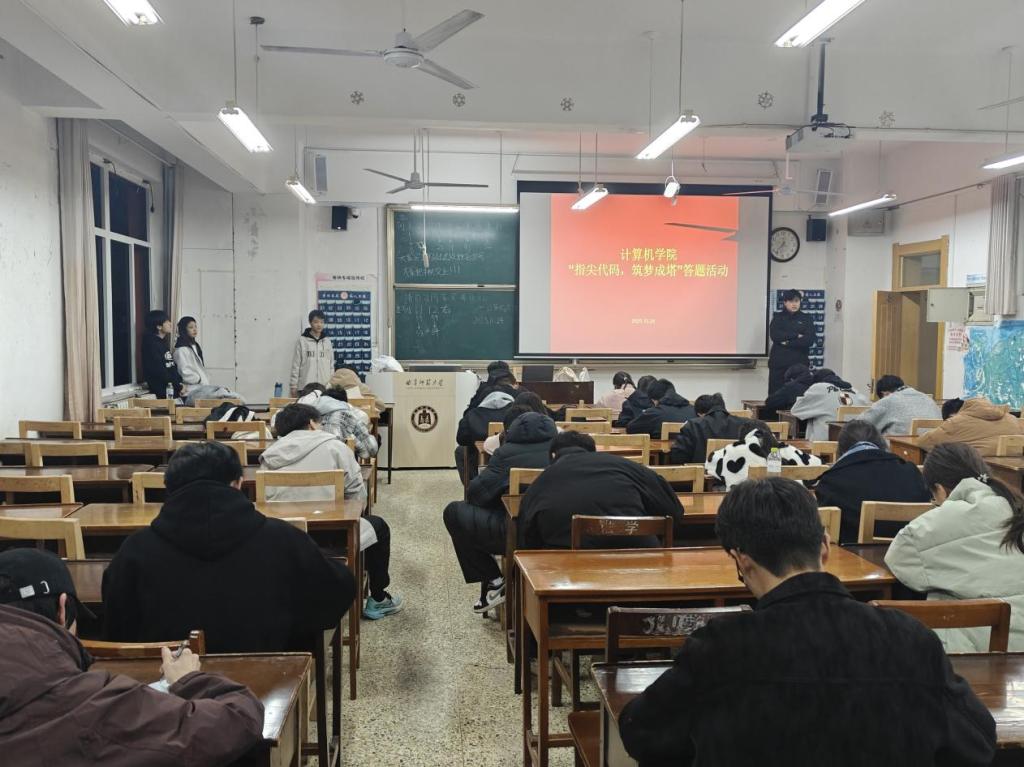 在明心扬帆广场举行了“冒险抽卡”答题活动。同学们在抽题区前排起长龙,每一次抽卡都充满了期待与惊喜。每当有人成功答对题目,现场便会响起热烈的掌声与欢呼声;即使偶尔有人答错导致分数清零,大家也彼此鼓励。同学们在轻松而紧张的氛围中不仅巩固了计算机基础知识,更深刻领悟到了程序员的“冒险精神”。