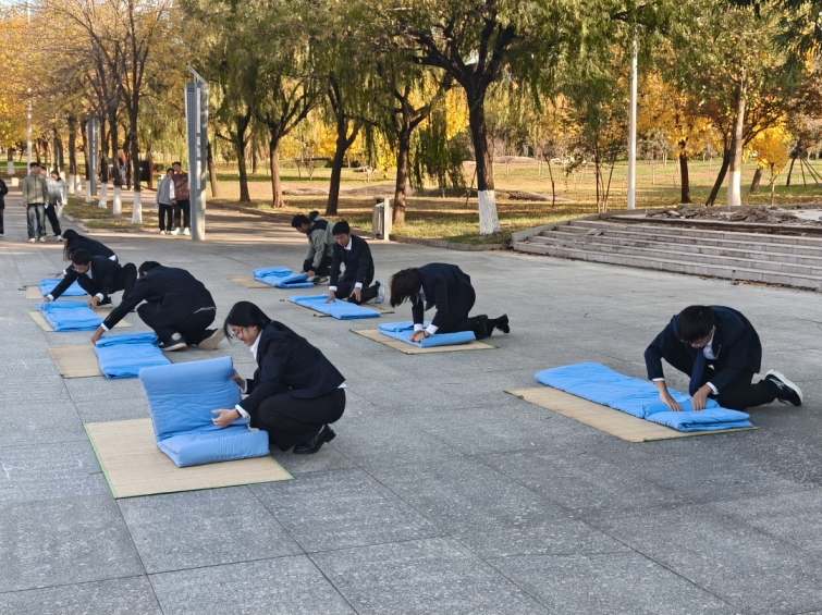 随后,比赛正式拉开帷幕。本次比赛共六个班级,各班按指定顺序依次上场,在四分钟的规定时间内,将平铺的被子叠成方正整齐的“豆腐块”。宿管部成员全程跟进,现场进行打分与统计。