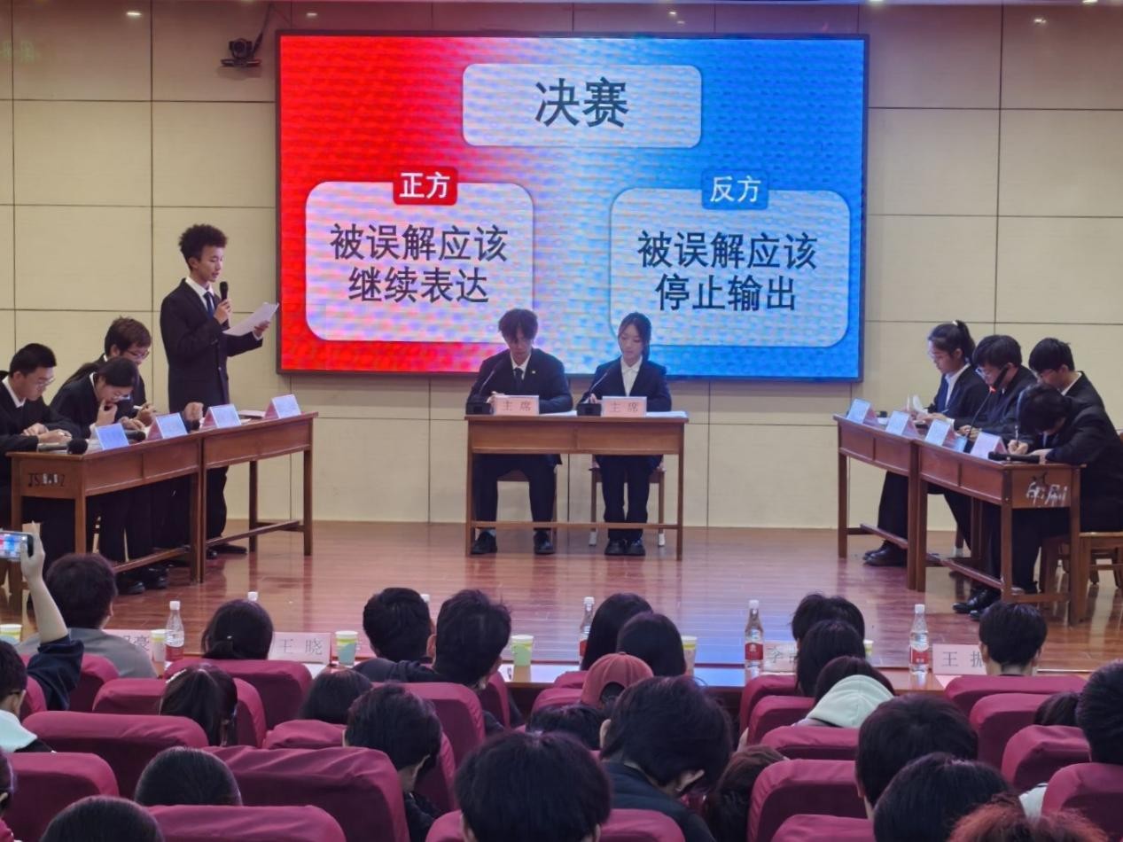 随后,决赛正式拉开帷幕,正反双方围绕“被误解应该继续表达还是停止输出”展开激烈交锋。比赛历经立论、攻辩、自由辩论与总结陈词四个环节,辩手们反应迅速、逻辑缜密、妙语连珠,以缜密无懈的逻辑构建起各自的论点体系,凭借妙语连珠的精彩发言不断碰撞出智慧的火花。现场气氛紧张而热烈,掌声此起彼伏。