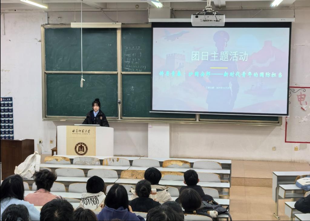 活动伊始,崔璨围绕 “国家安全、人人有责” 的核心主题,结合当下国防安全形势,阐述了本次团课开展的意义与价值,既强调了国防知识对青年团员的重要性,也鼓励大家在后续环节中积极参与、主动思考,以饱满的热情投入到国防学习与互动中。
