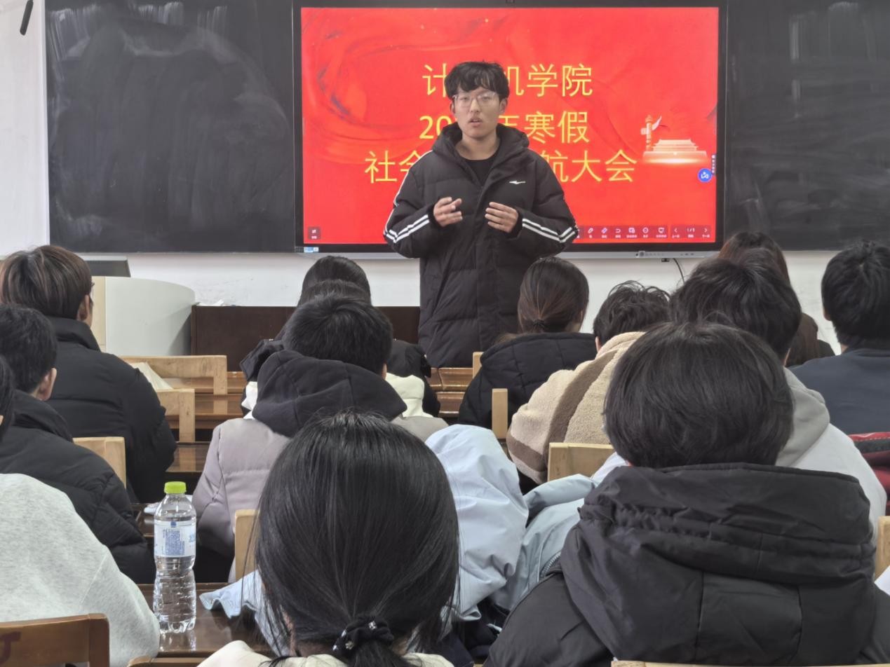 会议伊始,由学生会主席付相阁对本次寒假社会实践工作进行部署。他勉励同学们充分把握寒假实践契机,将专业知识与冬季社会需求精准对接,在服务群众、调研社会的过程中锤炼本领、增长才干,展现计算机学子的青春担当。同时,针对寒假期间低温天气、出行安全等关键问题,他着重强调了实践过程中的安全防护要求,明确了应急处置流程,为实践活动的安全有序推进筑牢保障。