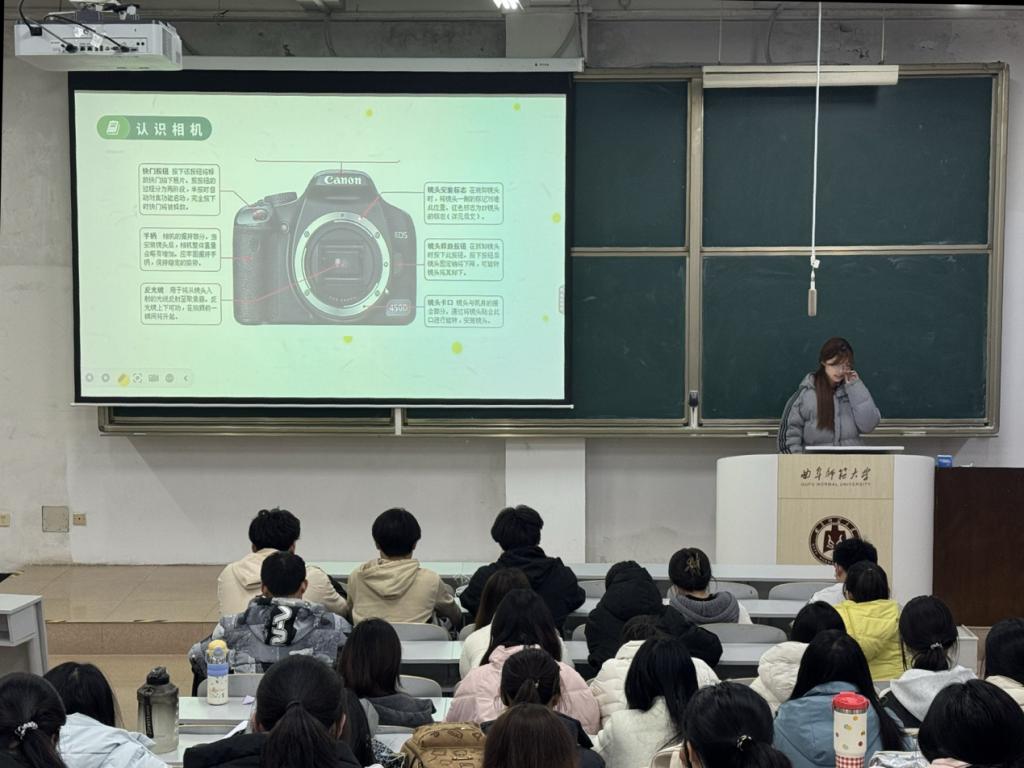 培训会上,主讲人围绕全国两会精神,系统解读国家在科技创新、数字经济、人才培养等领域的战略部署,帮助学员深刻把握时代发展大势,在思想深处厚植家国情怀,在行动自觉中坚定“四个自信”,引导青年学子将个人成长坐标对准民族复兴的时代航向。随后,培训聚焦“宣传技能提升”开展相机使用专题教学,从相机基础操作、曝光三要素、构图技巧等方面进行细致讲解,重点演示人物特写、场景全景、细节抓拍的拍摄方法,针对学员提出的光线运用、人物抓拍等问题逐一解答,帮助学员快速掌握宣传记录的核心技能。