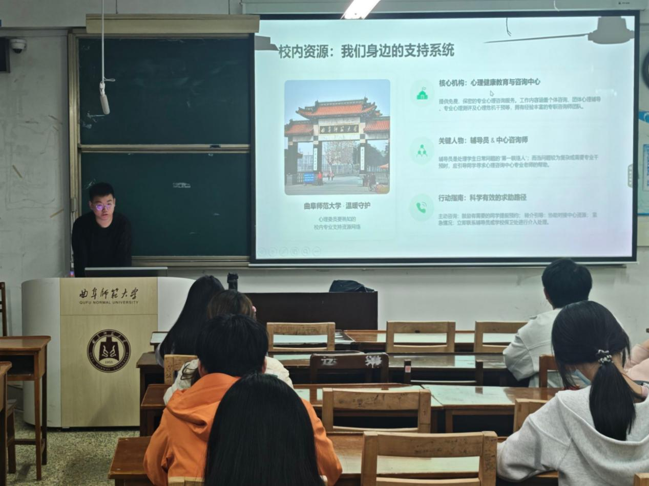 培训伊始,主讲人强调,心理委员是班级心理健康的“第一道防线”,要立足岗位职责,主动关注同学心理动态,做好心理知识宣传和困惑疏导工作。随后,主讲人重点讲解了常见心理问题识别、简单疏导技巧及心理危机上报流程,通过案例分析,让委员们快速掌握核心工作方法。