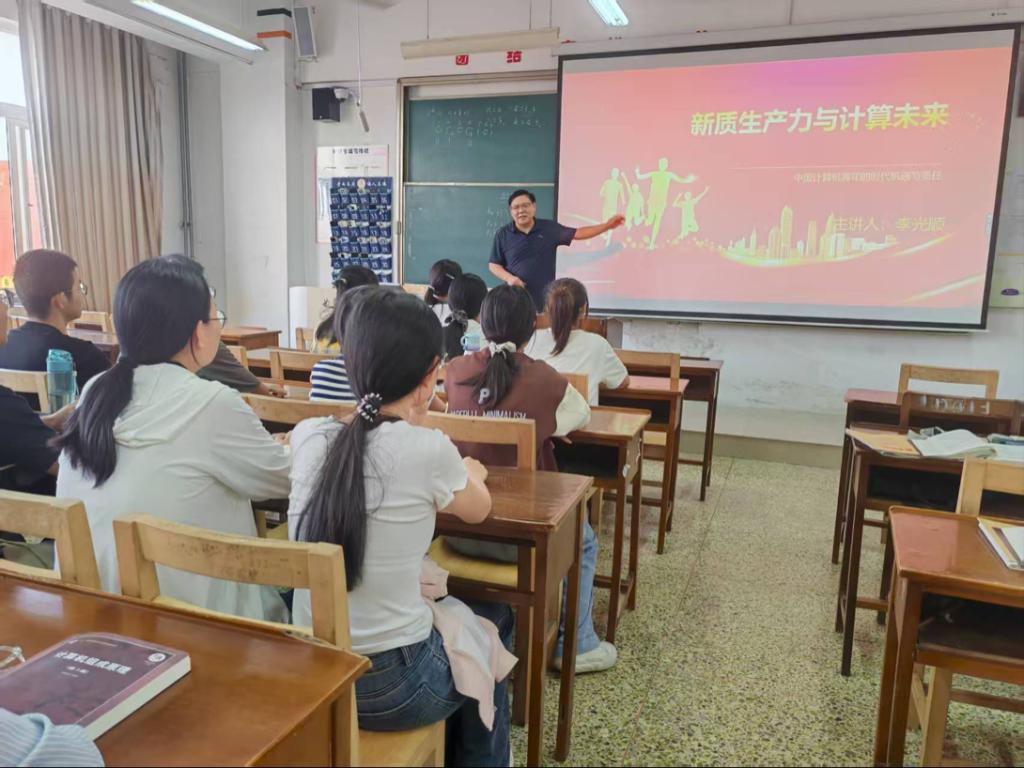 李光顺以“新质生产力与计算未来”为主题,系统阐释了新质生产力的核心内涵与时代价值,他指出,以科技创新为核心驱动的新质生产力,是推动教育高质量发展、构建现代化教育体系的关键力量。他勉励同学们要主动面向国家战略需求,夯实专业基础,提升创新能力,为加快发展新质生产力、建设教育强国贡献青春力量。